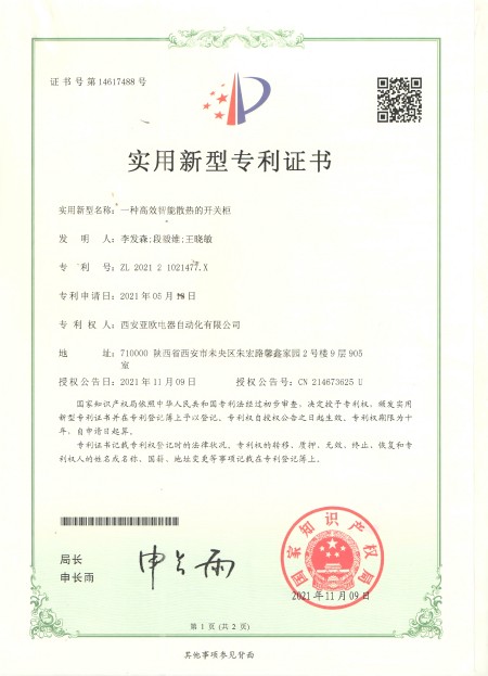 - 關(guān)于我們 - 資質(zhì)榮譽 - 一種高效智能散熱開關(guān)柜專利